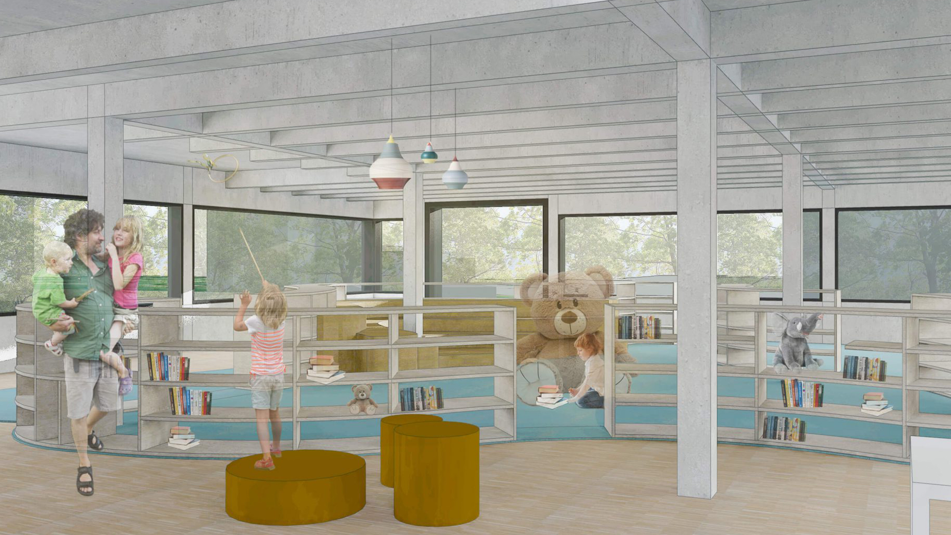 Während der vorläufige abstrakte Name “Bildungshaus” die politischen und administrativen Ursprünge der Idee widerspiegelt, steht für das Haus selbst viel auf dem Spiel. Hier wird keine Langweiligkeit erwartet: Das hybride Haus soll ein Schmelztiegel von Menschen, Erfahrungen, Fähigkeiten, Lernprozessen und Informationen werden. Diese sollen alle bei einer guten Tasse Kaffee im hauseigenen Café zusammenkommen und sich auf den verschiedenen Treppen, die das Split-Level-Design verbinden, vermischen.