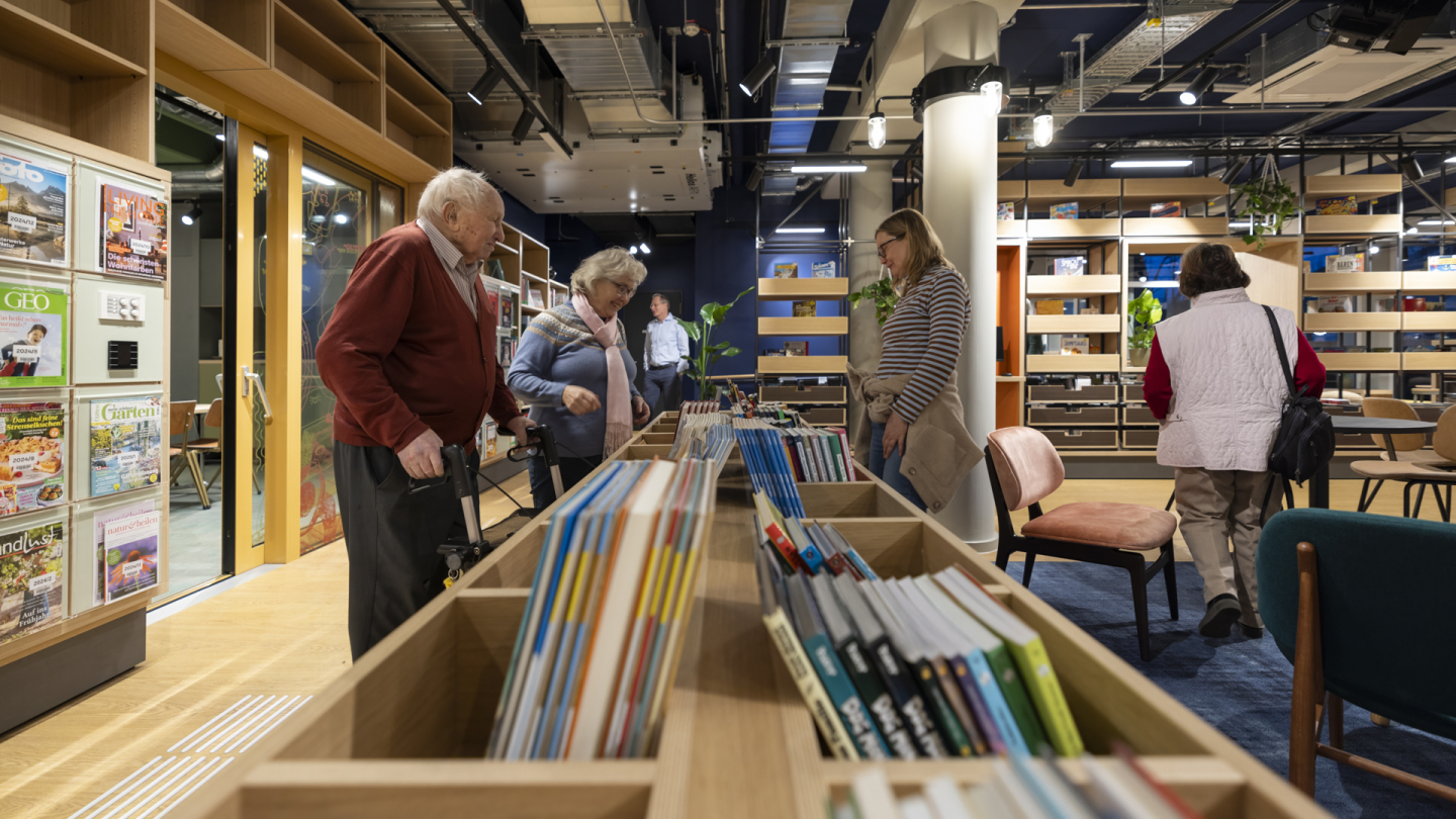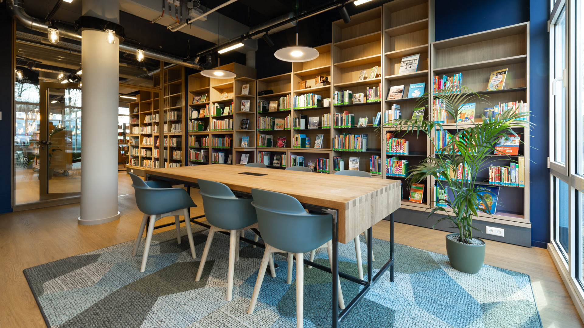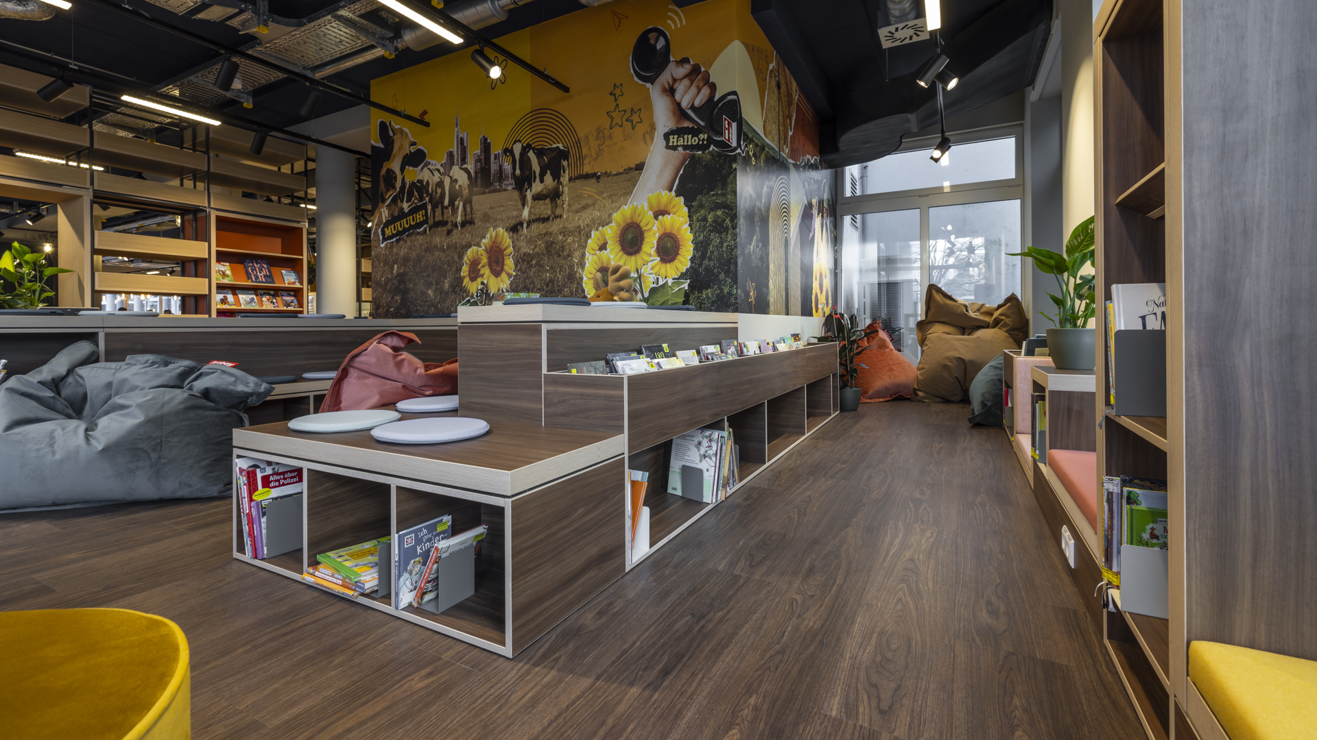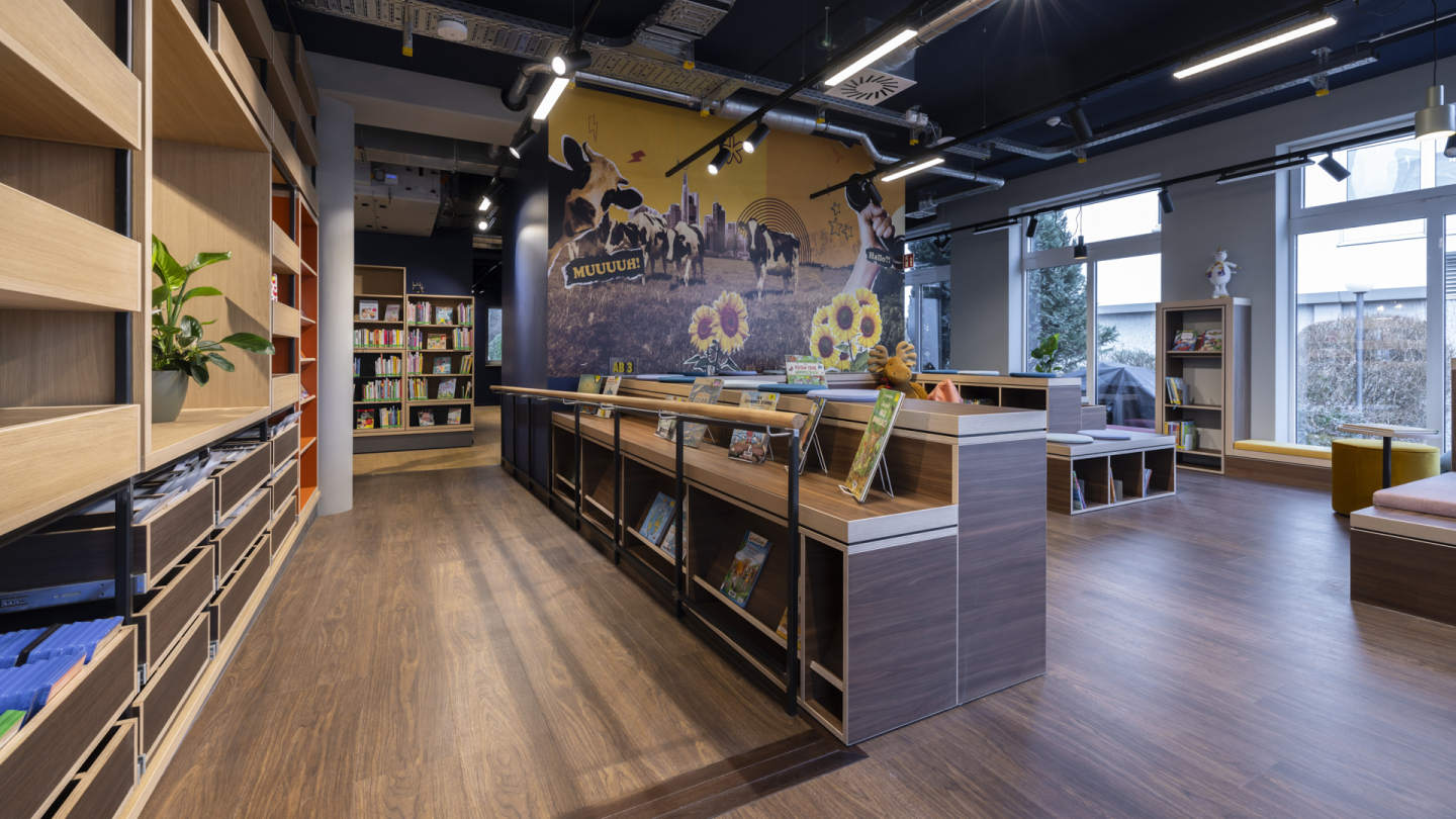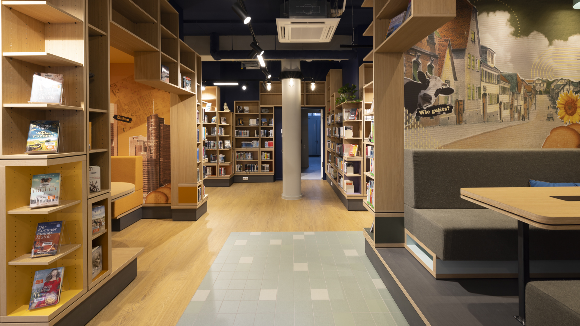 Ein Blickfänger sind die bequemen, freistehenden Kokons, die mit speziell für diese Bibliothek gestalteten Hintergründen ausgestattet sind. Friedrichsdorf wollte einen inspirierenden Ort für alle schaffen – ein Wunsch, der voll und ganz in Erfüllung gegangen ist. Inklusive Einrichtungen wie Unisex- und Familientoiletten, taktile Bodenwege und rollstuhlgerechte Buchabgabestellen machen diese Bibliothek nicht nur attraktiv, sondern auch für wirklich jede*n zugänglich.