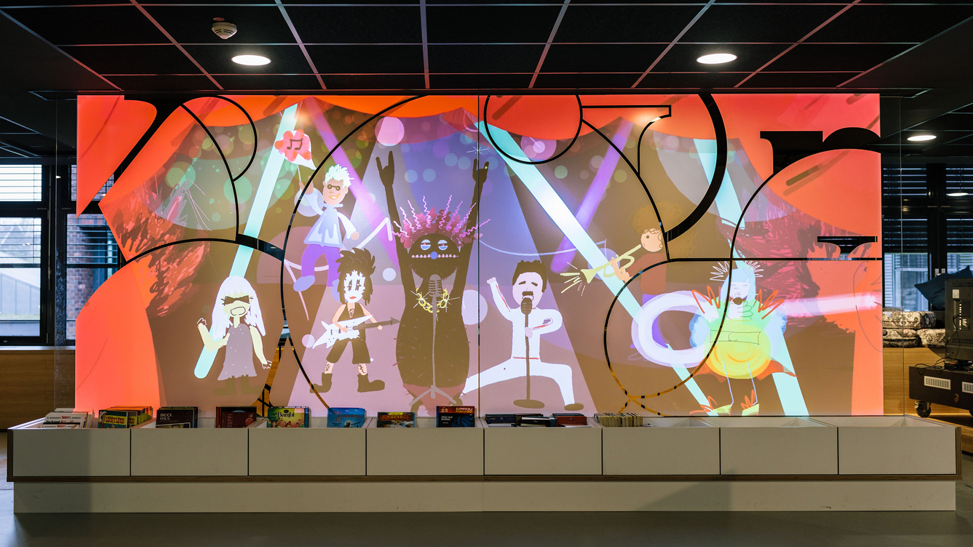 Diese Installation ermöglicht es Kindern und Jugendlichen, mit lokalen Künstler*innen zusammenzuarbeiten und mit großformatigen digitalen Kunstwerken zu experimentieren. Die Stadtteilbibliothek Kalk wurde in ein lokales Wohnzimmer mit technologischem Anspruch verwandelt und fördert den Stolz und die Identität der Gesellschaft.