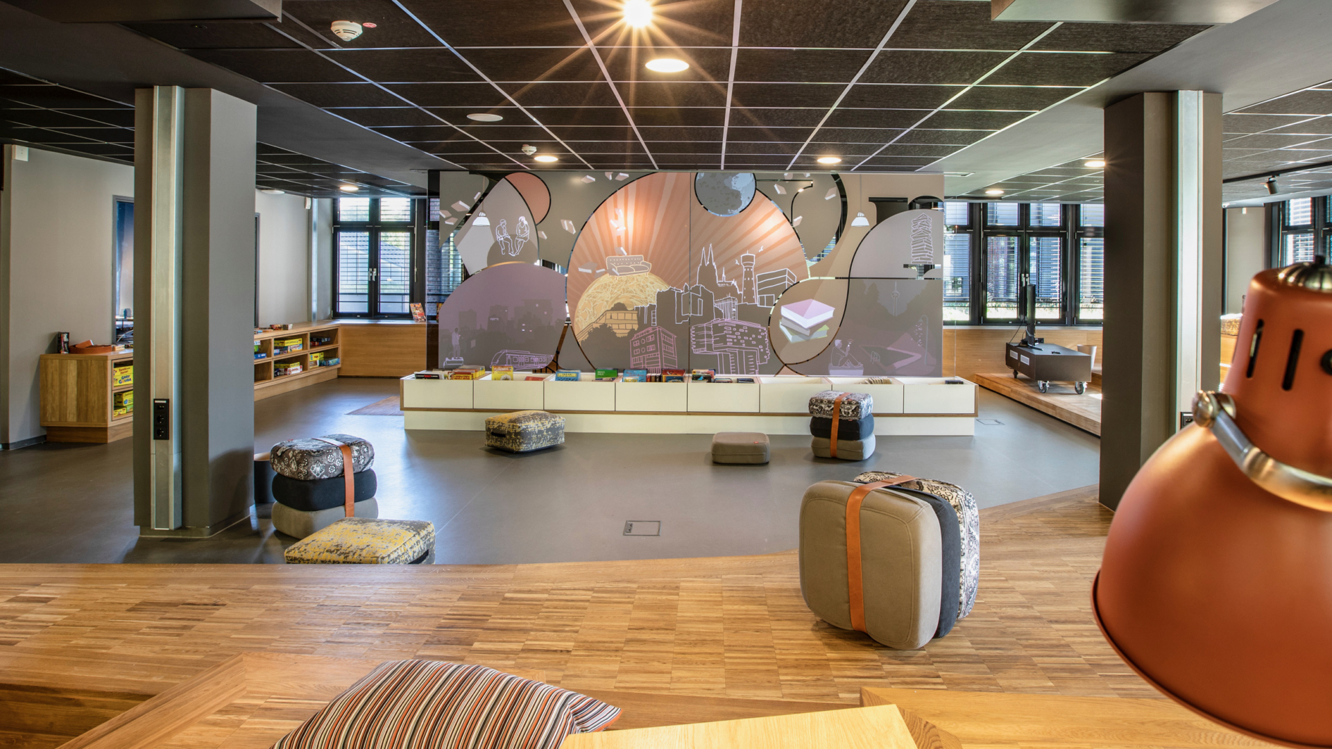 Die Offenheit für andere Sprachen, verschiedene Altersgruppen und Kulturen spiegelt sich in der Einrichtung der Bibliothek wider. Sie bietet eine mehrsprachige Medienauswahl, seniorengerechte Möbel, einen Kinderspielplatz und eine ganze Etage, auf der sich die Generation Z willkommen fühlt, um diese Abteilung für sich zu beanspruchen. Kalk, der am stärksten von Migranten bevölkerte Stadtteil Kölns, ist mit einer Ungleichheit konfrontiert, die auf ungleichen Chancen beruht. Heute beherbergt er eine der innovativsten Bibliotheken Deutschlands mit einem einzigartigen Digitecture-Projekt der Bremer Künstlergruppe Urbanscreen.
