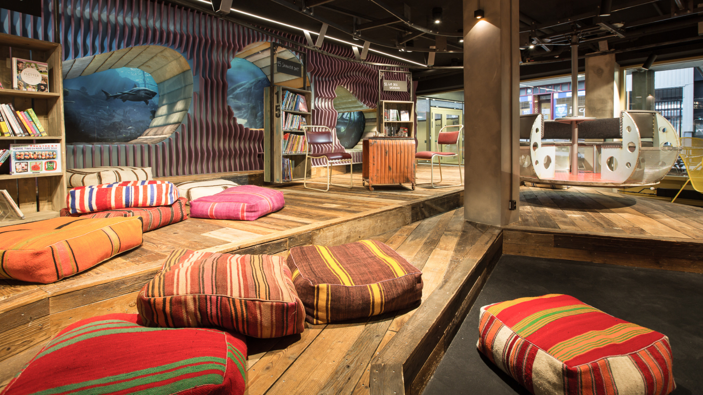 - Vloeren: Verven is niet ideaal, maar gekleurde vloerbedekking of tapijten kunnen zones markeren. Uitzondering: een betonnen vloer in een MakerSpace kan gelakt of getamponeerd worden voor een opfrisbeurt.