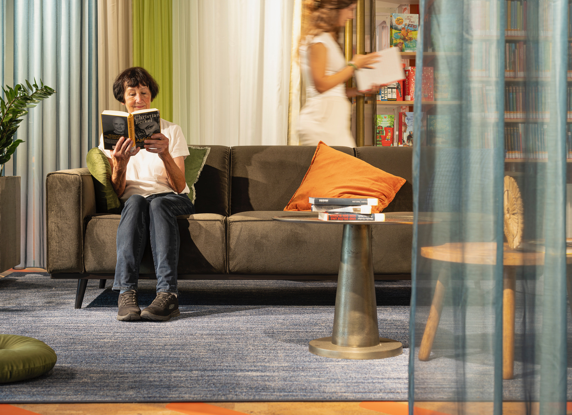 De onlangs geopende Stadsdeelbibliotheek Huttrop brengt nieuw leven in een voormalig supermarktgebouw. Het interieurontwerp van advies- en ontwerpbureau includi heeft een hoge belevingswaarde. Dit voegt een extra dimensie toe aan deze uitnodigende en inclusieve derde plek voor alle leeftijden. De wijkbibliotheek Huttrop van Stadsbibliotheek Essen is een van de vestigingen met het grootste media-aanbod en het hoogste aantal uitleningen. De bibliotheek moest verhuizen naar een nieuwe bestemming, omdat het vorige gebouw niet meer ter beschikking stond. Het werd een leegstaande supermarkt, aan de stadsgrens met Essen-Steele, goed bereikbaar en met voldoende parkeergelegenheid. De eerste stap was het gebouw structureel en architectonisch geschikt te maken voor de nieuwe functie. Maar hoe maak je vervolgens, binnen een gelimiteerd budget, van één grote, open ruimte een unieke en uitnodigende bibliotheek?
