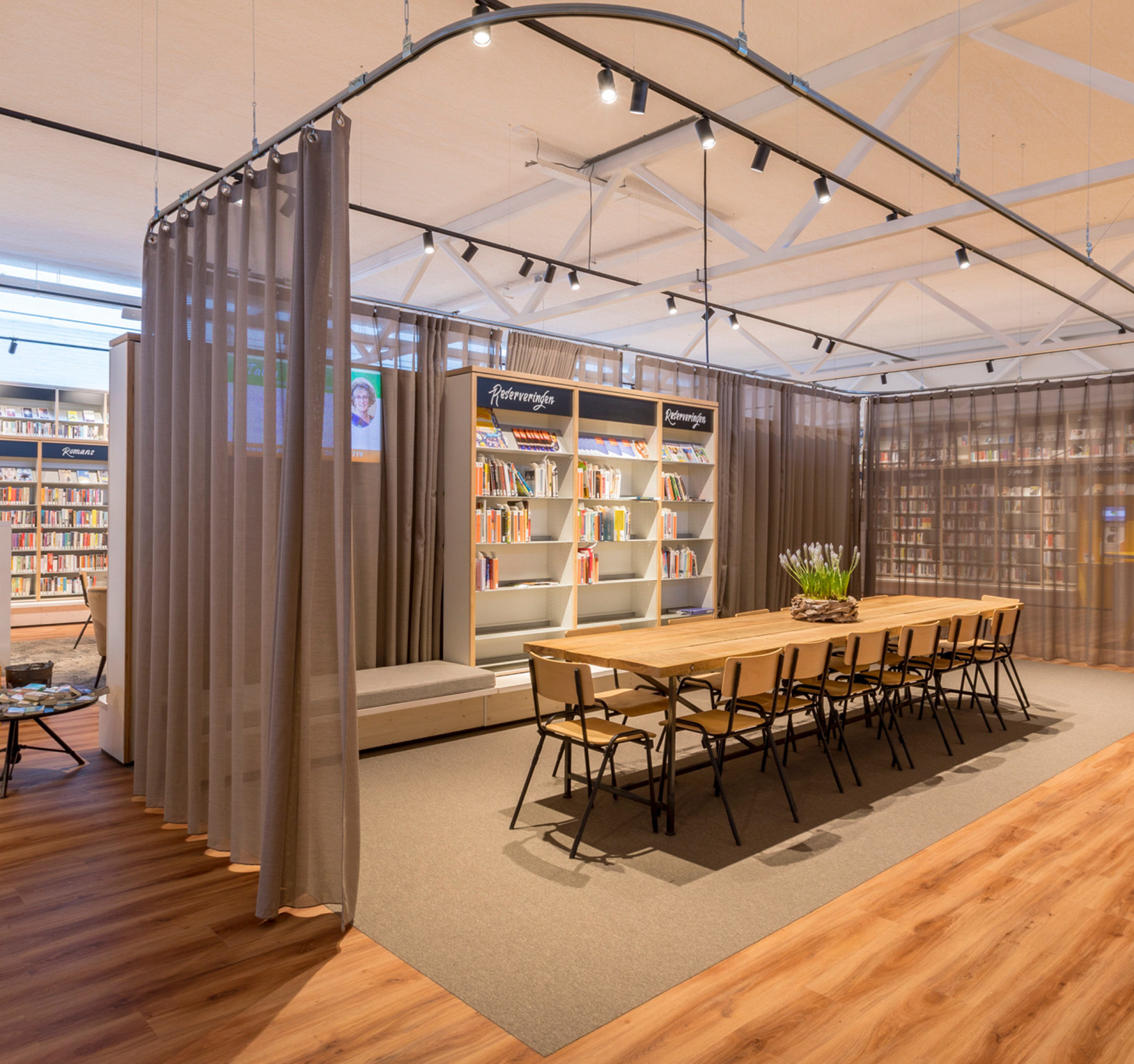 Door financiële bezuinigingen kocht de gemeente het bibliotheekgebouw. De bibliotheek huurt nu de ruimte terug van de gemeente, maar met minder vierkante meters: slechts 1.490 m2 in plaats van de eerdere 2.350 m2. Dit was niet alleen een beperking in ruimte, maar het bracht ook het risico met zich mee dat de bibliotheek genegeerd zou worden, omdat een bank, cafés en restaurants de ‘etalages’ van het gebouw in beslag zouden nemen. Dit vroeg om een doordachte make-over die de bibliotheek zichtbaar houdt, zelfs zonder een groot budget. Het herontwerpen van de ruimte was slechts de eerste stap.