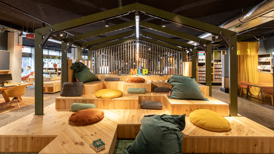 To ensure the success of a new third place as much as possible, several criteria must be met, including factors like the venue having low-threshold access, visibility, usability, safety, comfort, and a hospitable experience. Goes Library easily checks all these boxes. When it comes to the comfort of its visitors, this place truly goes the extra mile. In the reading garden children can pick out a spot on their own. The family room is a pleasant place to stay with kids, thanks to the use of soft materials and a large rug.
