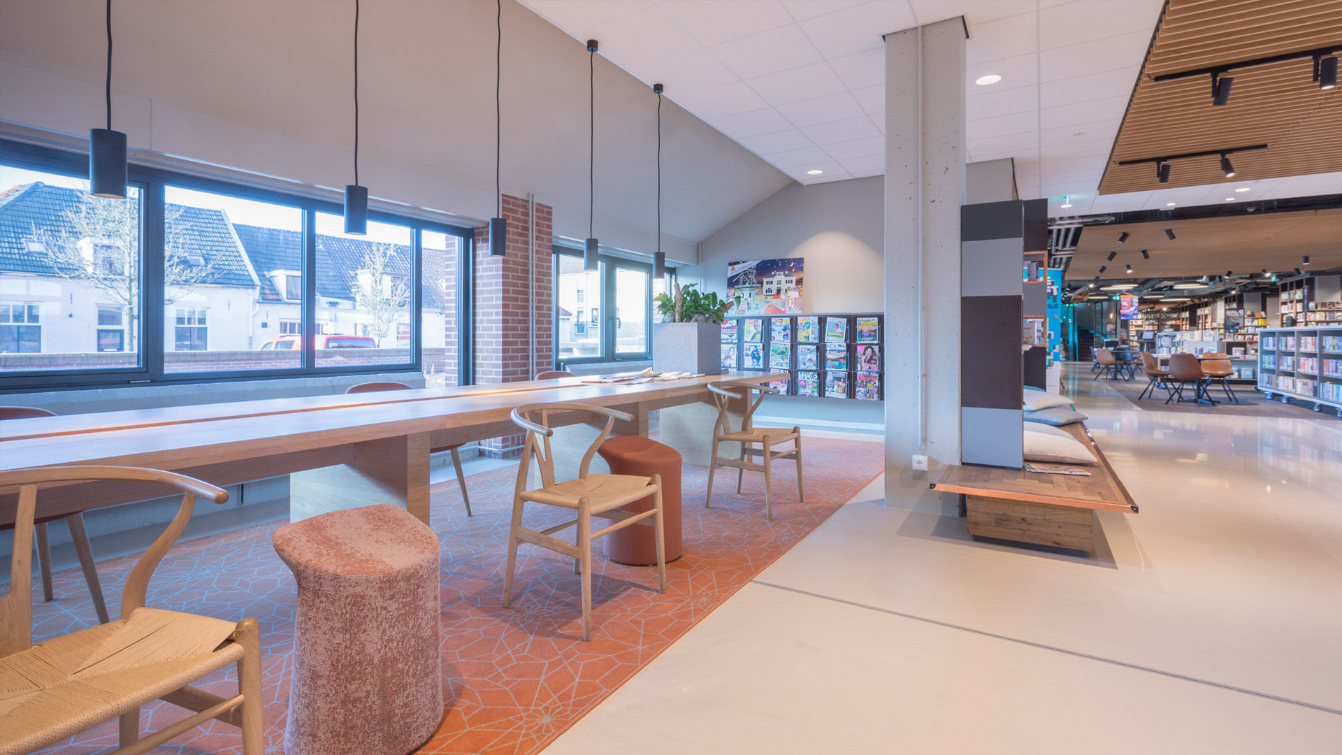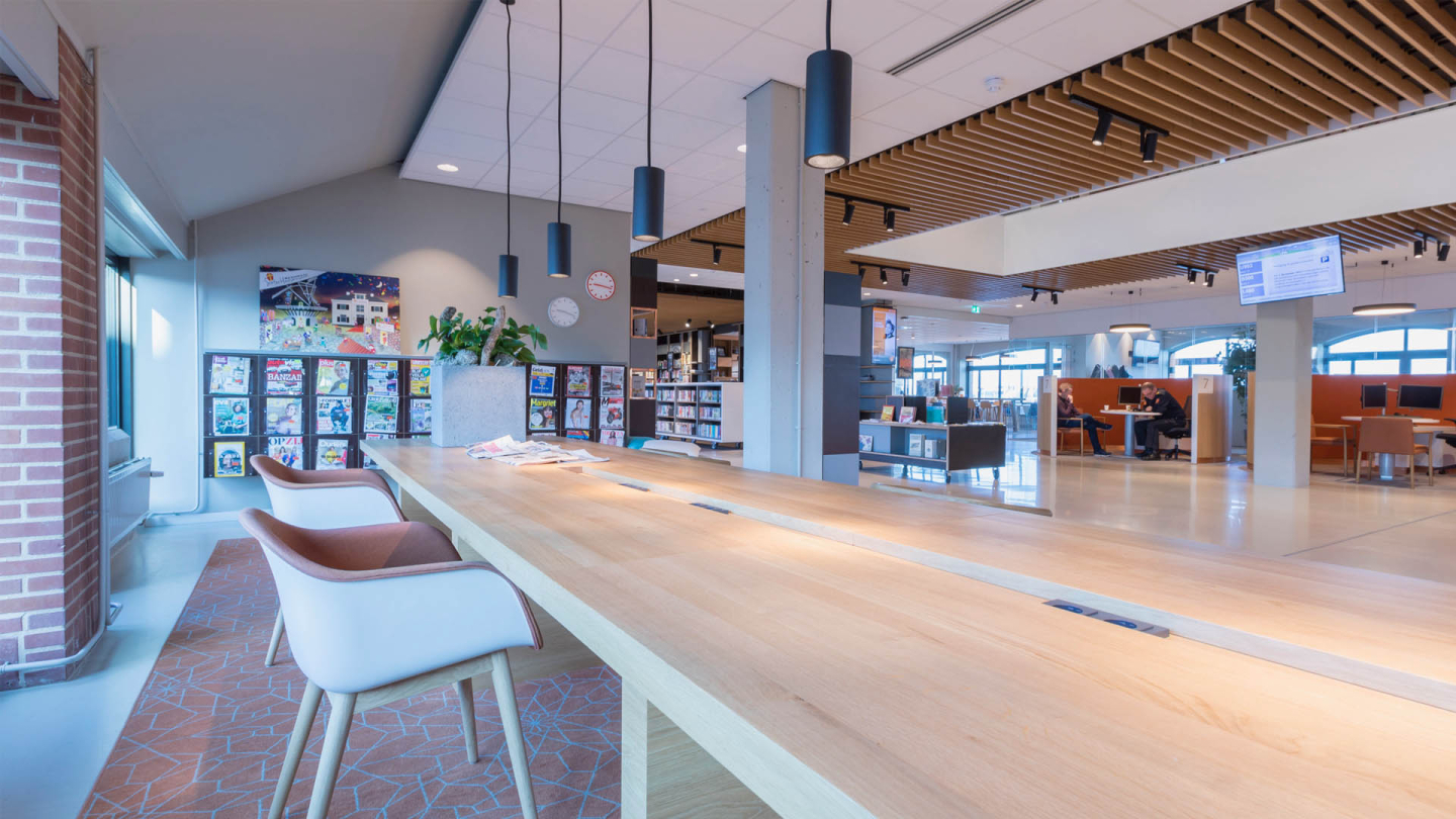 Thanks to its uncomplicated and inviting character, the space functions as an inclusive living room for the citizens of Harderwijk to wander among the various media, places and facilities. This small space now draws you in with a big welcome. Despite having reduced in size, its cozy character and openness invite visitors to stay longer, sip on a soft drink or coffee at the long reading tables, and get lost in a good book, magazine, or a pleasant chat.