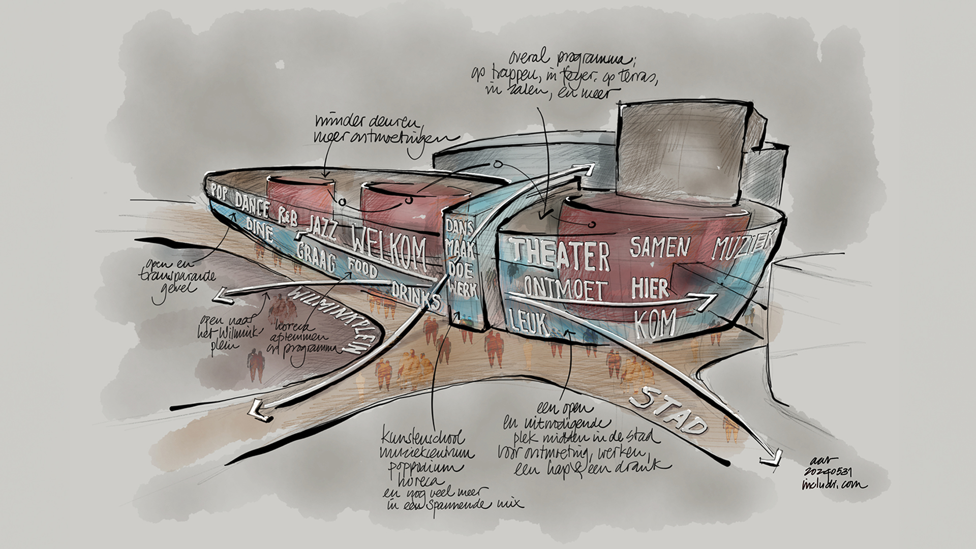 Enhanced access from the Wilminkplein, along with a spacious ground floor featuring daytime dining and additional gathering spaces, will boost the Muziekkwartier’s role as a lively, welcoming cultural home for diverse groups in Enschede. It will be the go-to cultural destination for music, theater, creative development, relaxation and discussions—a true cultural cornerstone of the city.