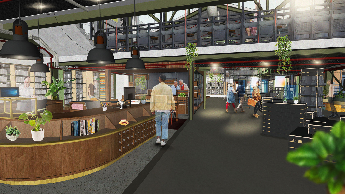To get a better idea of the needs and wants of the involved parties, we organized two mini-workshops. The first sketches and ideas of the plan emerged. Since this is a multi-year project, we stayed up to date thanks to a user investigation of which the results were incorporated into a four-day workshop with the future cohabitants of Het Warenhuis. The users contributed exciting ideas, which we captured in a lookbook. The ideas were translated into an interior that fits both the users and the building. Extra attention was paid to flexibility, identity and a clever multi-way use of space. Above all, people should soon recognize themselves in this space; the soul of Oss must be felt in Het Warenhuis.