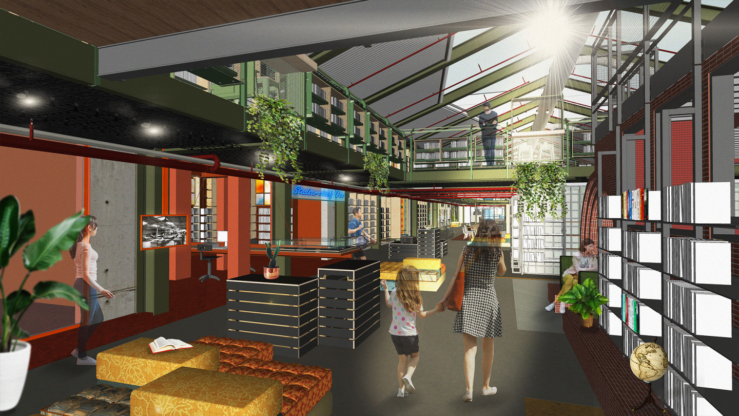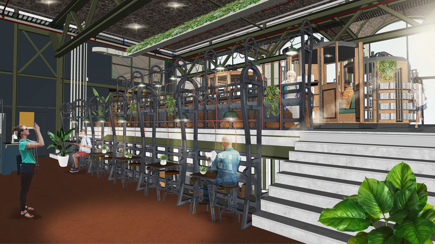 We researched the city’s identity and Oss’ rich industrial past. While tough, robust materials like concrete and steel naturally complement this environment, we chose to take it a creative step further. What makes an industrial interior appealing to people? And how can we implement that in Oss? Answers were found in Germany, where we visited old factory sites transformed into public parks.