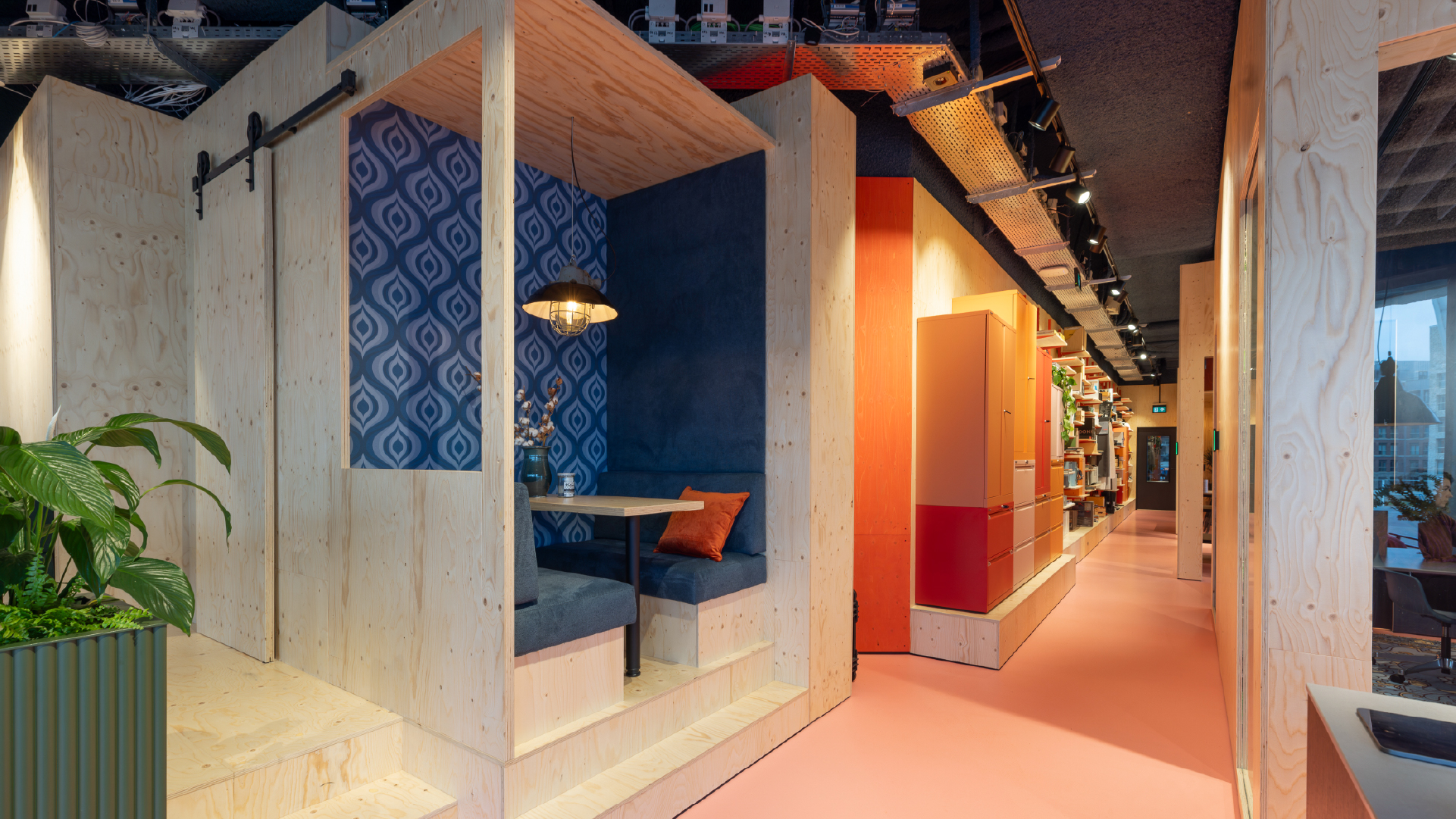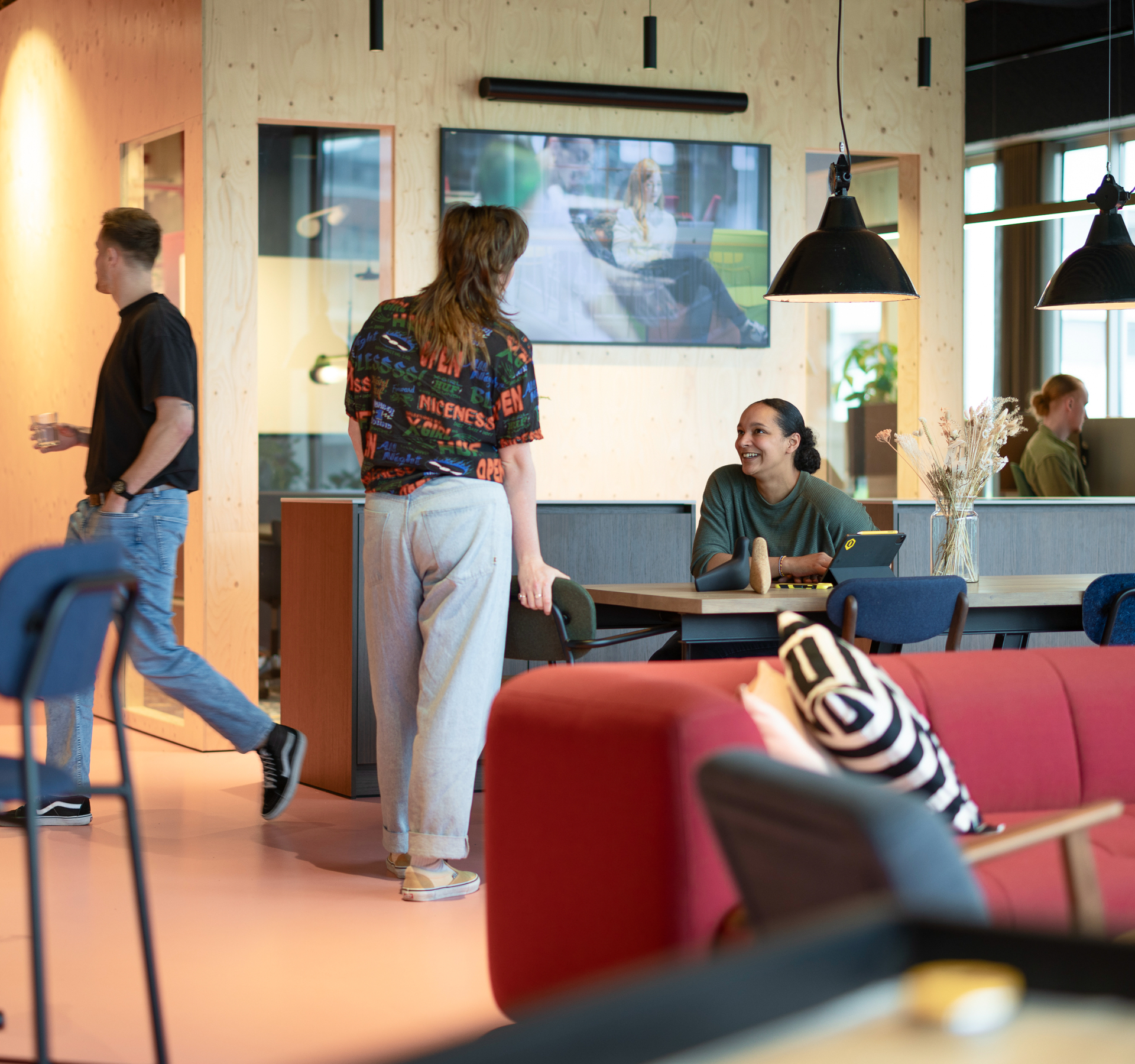 Want to experience why our workspace is, in our opinion, the most stunning in Groningen? Come by and judge for yourself! A sneak peek: the inviting and transparent landscape offers a diversity of spaces, including a sample room, enclosed meeting and work areas, each with a unique color, in addition to open sections, office islands, a focus zone and numerous flex spaces. A long wall with our “steel library” leads visitors from the entrance to the living room at the back of the space. Among other things, here you will find an open kitchen with an XL community table and a diverse selection of cocoons at different heights, including a ‘nap room’ for rest and reflection. The homey atmosphere is enhanced by plants and an original mix of furniture: from practical to decorative, from vintage design classics to sustainable newcomers. Our new headquarters reflects includi’s mission and approach in every detail, illustrating the end result our clients can count on: a place that feels like a warm home, where people can thrive!