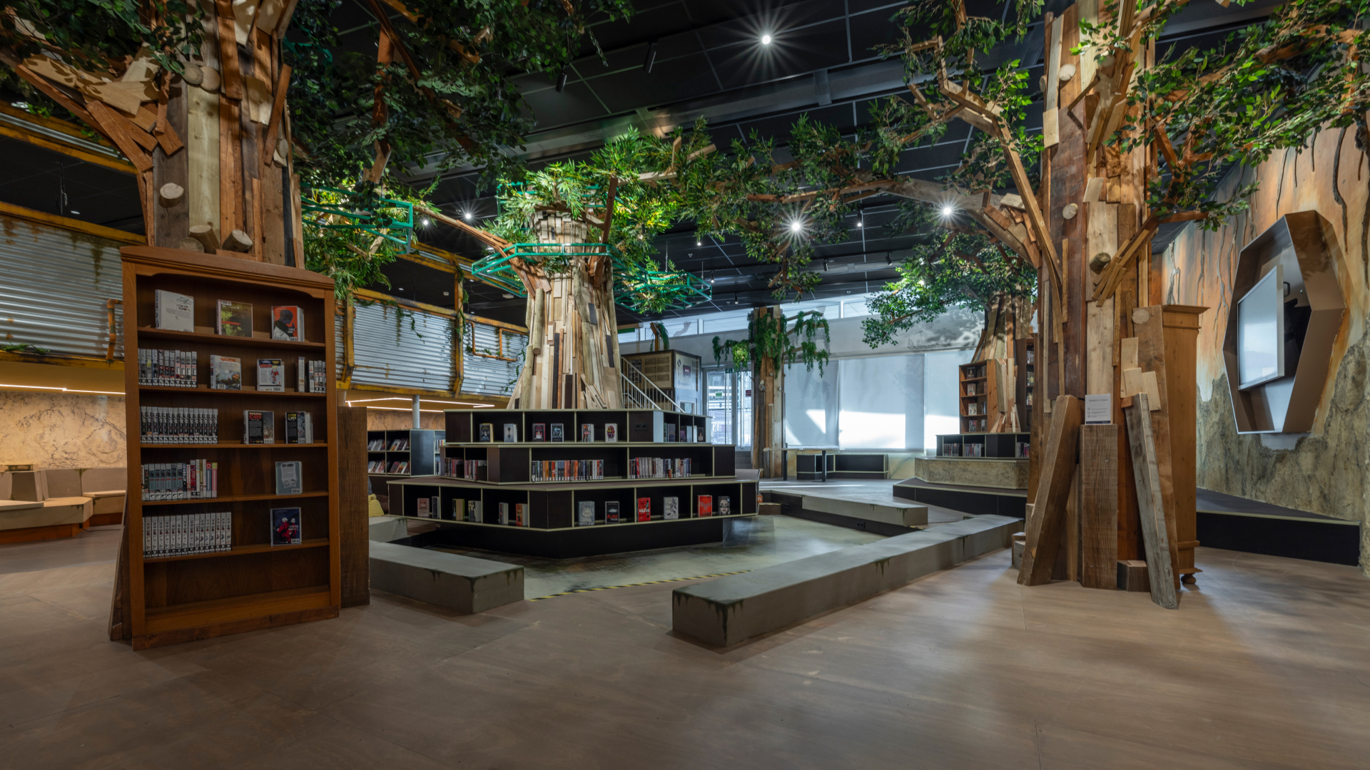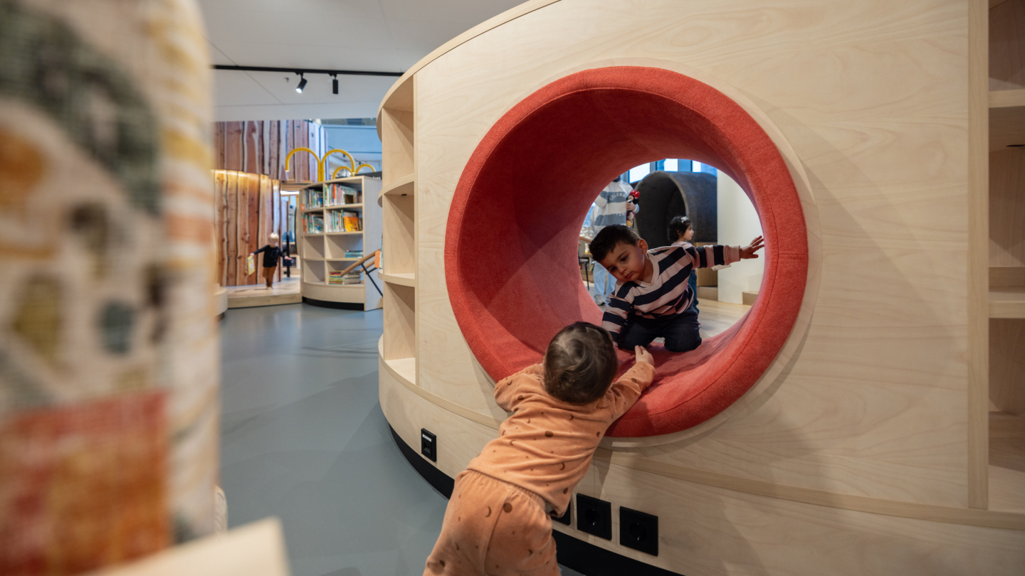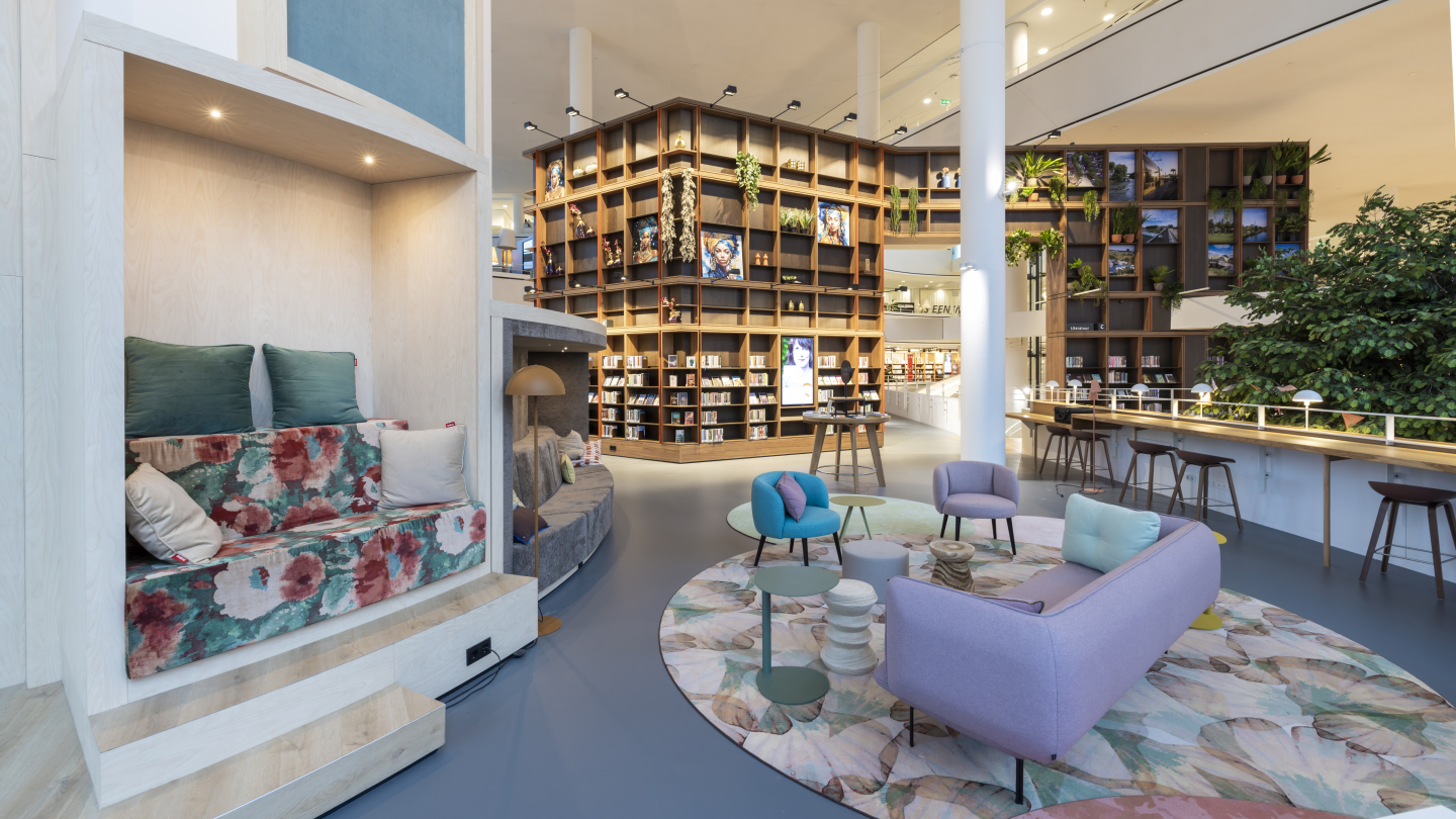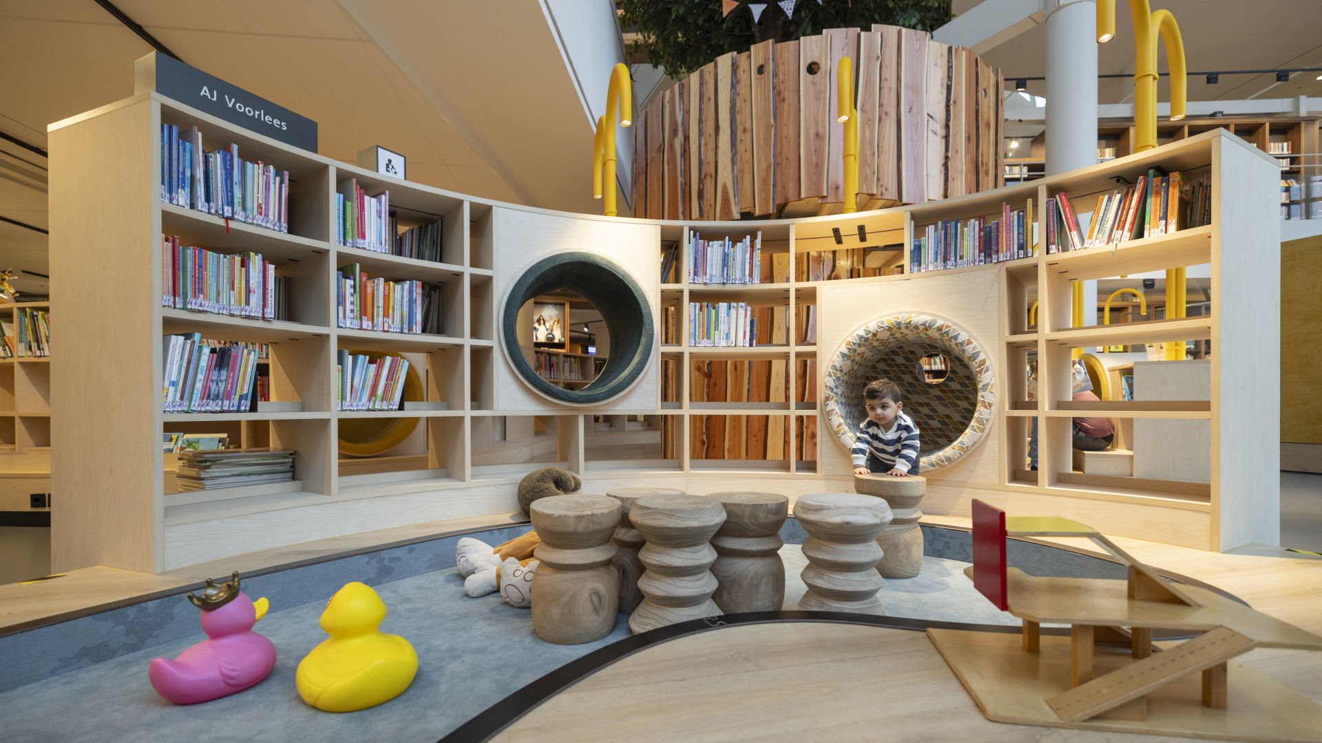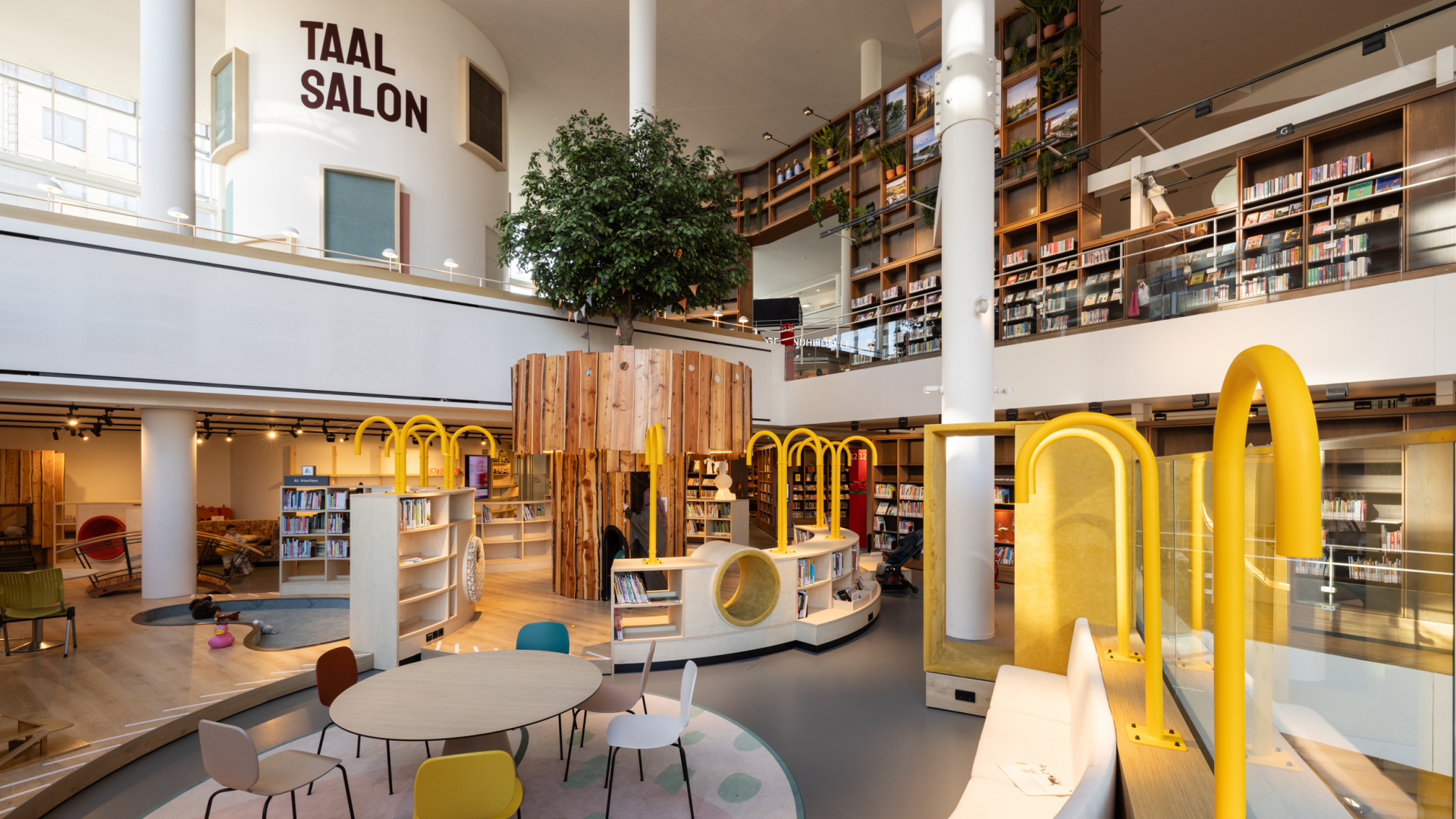 Three themes play the main role in our design: the Noorderlicht bookcase, the Bazaar and the Park. The Noorderlicht bookcase includes free-standing bookcases that extend from the ground floor to the second floor. The Bazaar has the atmosphere of a lively market abroad. Here you can “shop” at various public functions within the Stadshuis. The imaginative Park, which even has a tree with genuine branches, is focused on the youngest visitors.