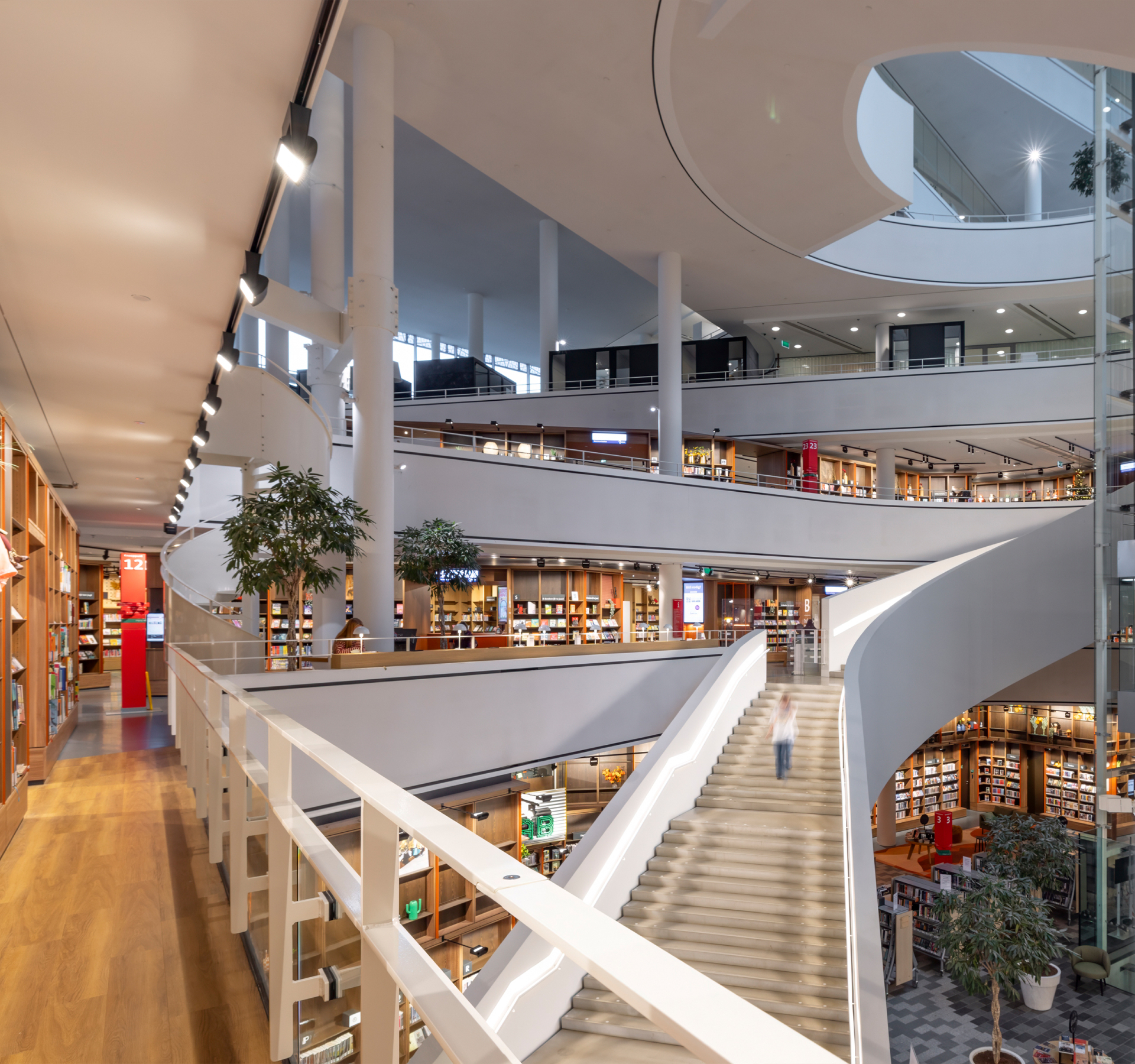To carefully identify the needs and wishes of the stakeholders and users involved, we organized several workshops and joined focus groups. This was followed by several Design Workshop weeks. Collaboration was paramount in our approach. The result? An innovative new plan in which the library is no longer limited to one floor, but is spread across multiple levels. In doing so, the other public functions are organically interwoven into the interior design. Special attention was paid to the younger residents of Nieuwegein, which led to the creation of an experience-rich youth zone.