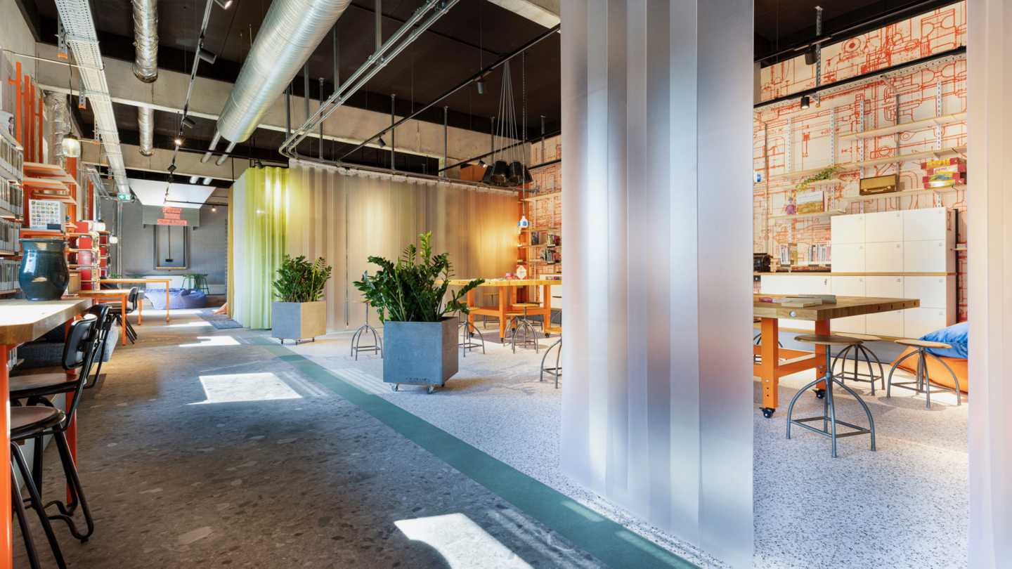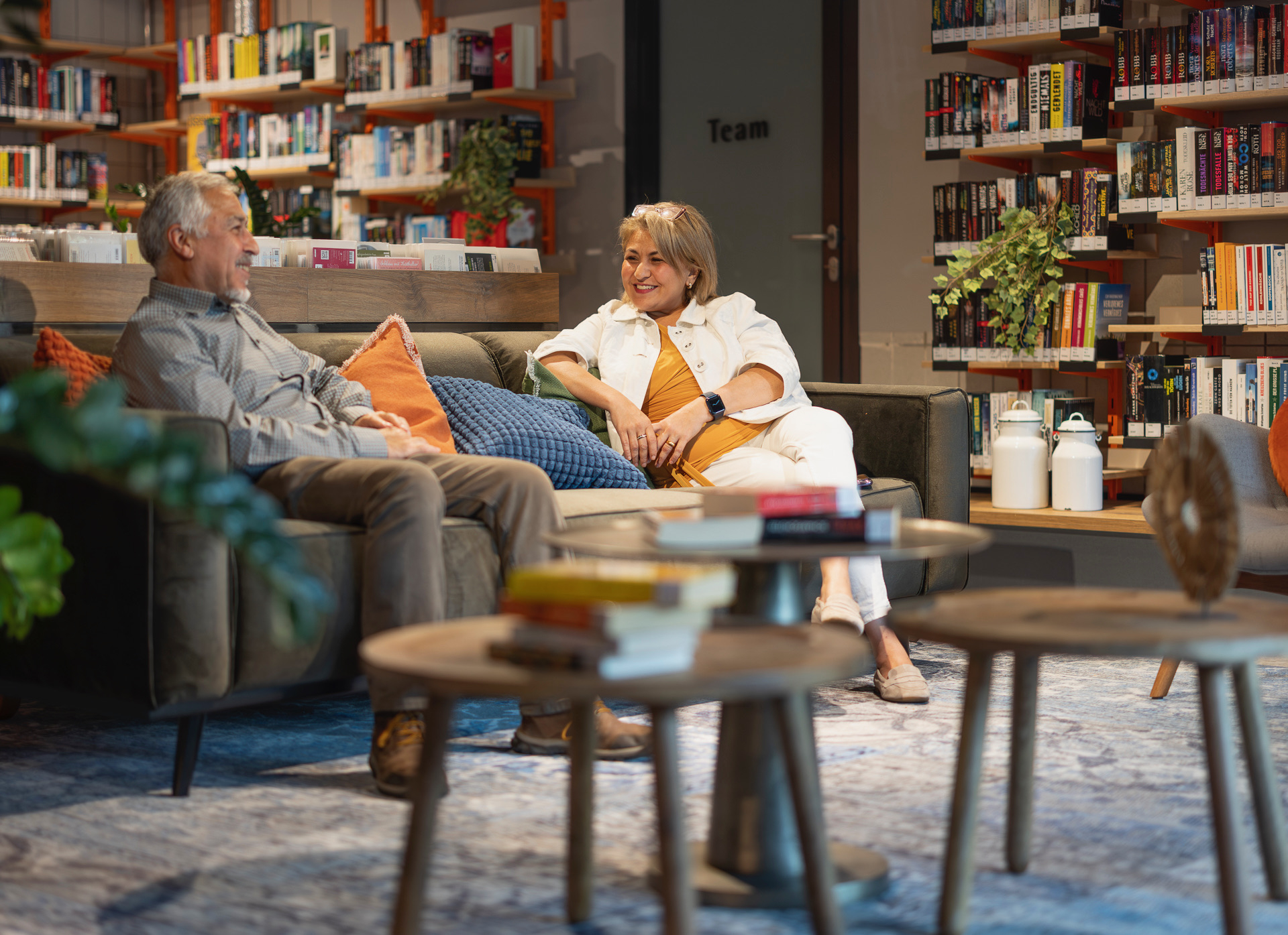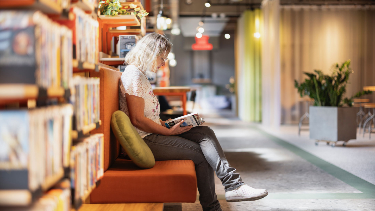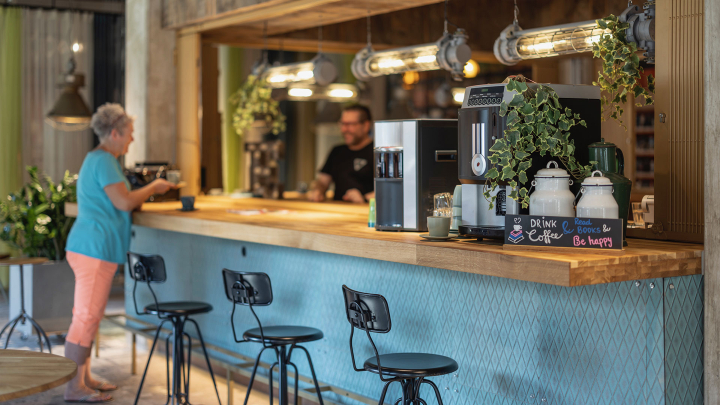 In Huttrop District Library, the industrial past comes to life in a modern way via a colorful interior, where both subtle and striking references to the steel and coal industries can be discovered. This creates recognition, a familiar feeling, but also wonder. Upon entering, everyone immediately feels welcome in the cozy coffee bar with the infotheque. Clever layouts create separate zones for different age groups and interests, each equipped with comfortable seating areas, from community tables to comfy cocoons.
