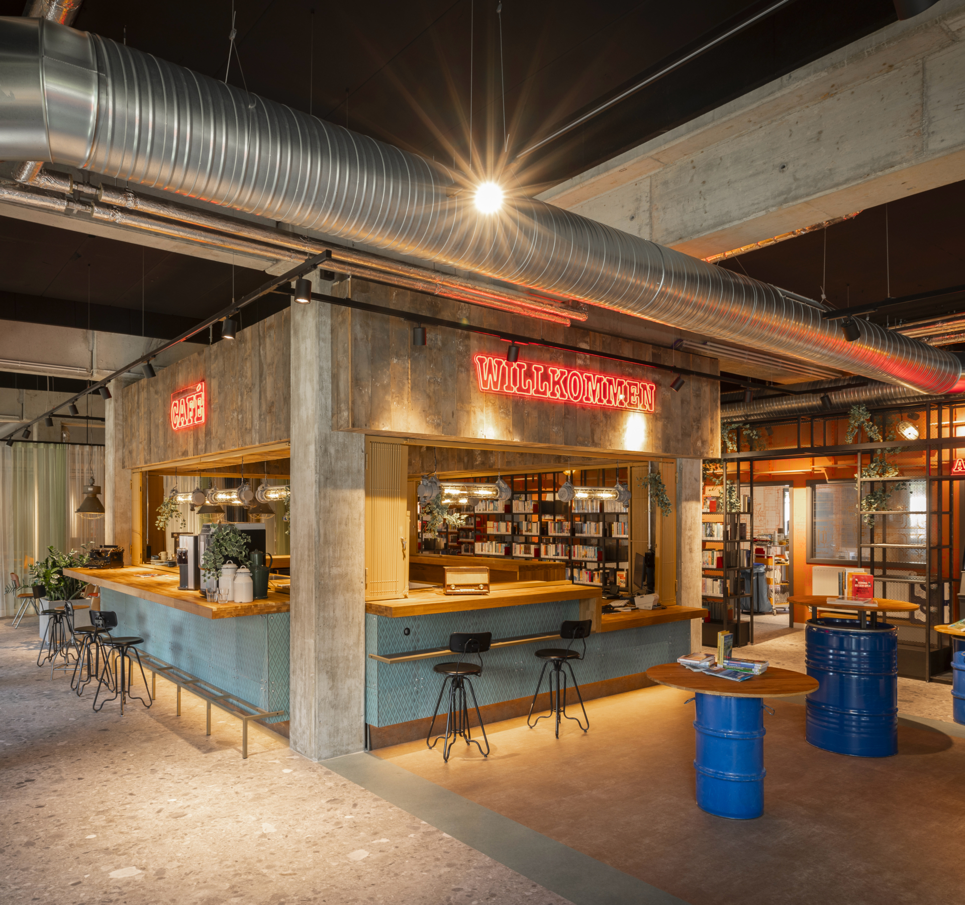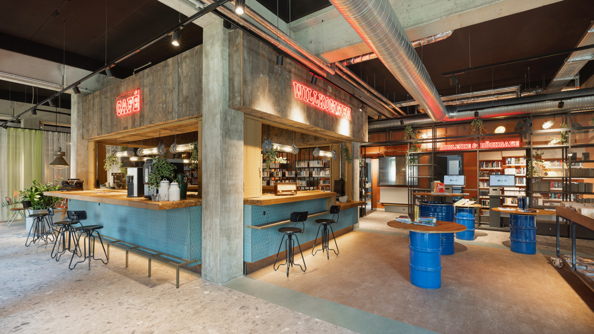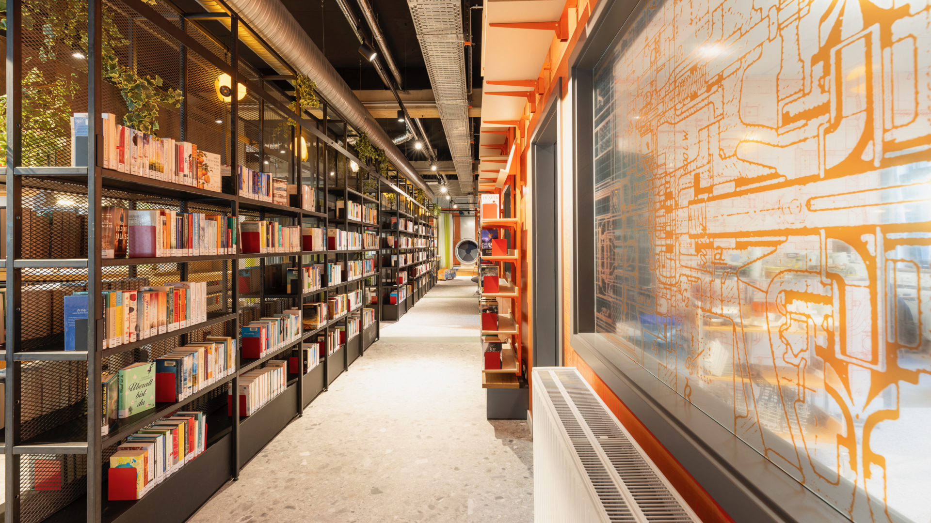 We organized Design Workshops and user surveys to understand the needs of the mixed audience of Huttrop and the library team. During the Design Workshop, the theme of the library’s visual identity was determined: It should tie in with the industrial Ruhr area of Essen with its rich history, often affectionately called “Ruhrpott”. Furthermore, we gave architectural advice to strengthen the function of the third place within the building and to physically strip away the former supermarket atmosphere.