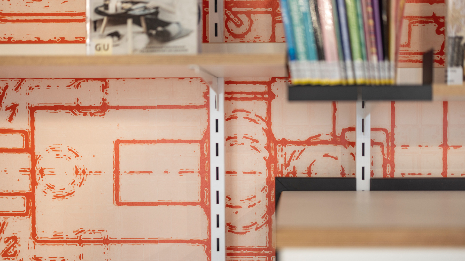 The Huttrop district library of Essen City Library is one of the locations with the largest media offerings and the highest number of loans. The library had to move because the previous building was no longer available. It found its new home in a vacant supermarket on the city limits of Essen-Steele. The new location is conveniently situated and accessible with ample parking opportunities.The first step was to make the building structurally and architecturally suitable for the new function. How do you turn one large, open space into a unique and inviting library… while staying within a limited budget?