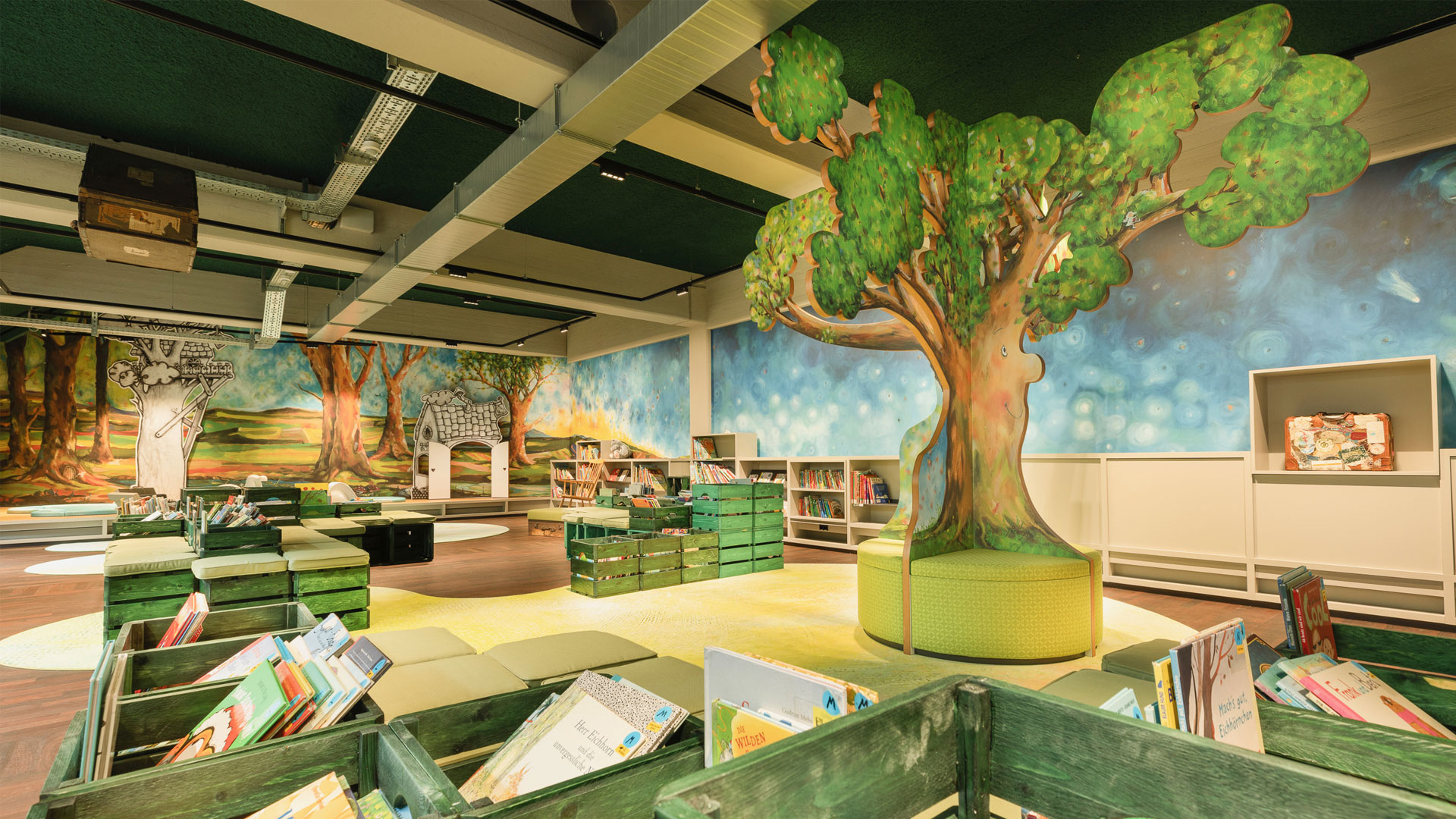 The initial renovation plans were extensively researched by includi. We also identified the remaining missing factors – the basic elements of a “third place library”. This was followed by a Design Workshop with the library team. Together we arrived at a clear positioning and identity of Library Velbert 2.0. We then translated the results of the Design Workshop and a small-scale user survey into a new interior design for the library, spread over three floors. As art director, includi safeguarded the concept and the intended identity during the implementation phase. We paid extra attention to the new Children’s World: an imaginative discovery place for the youngest visitors.