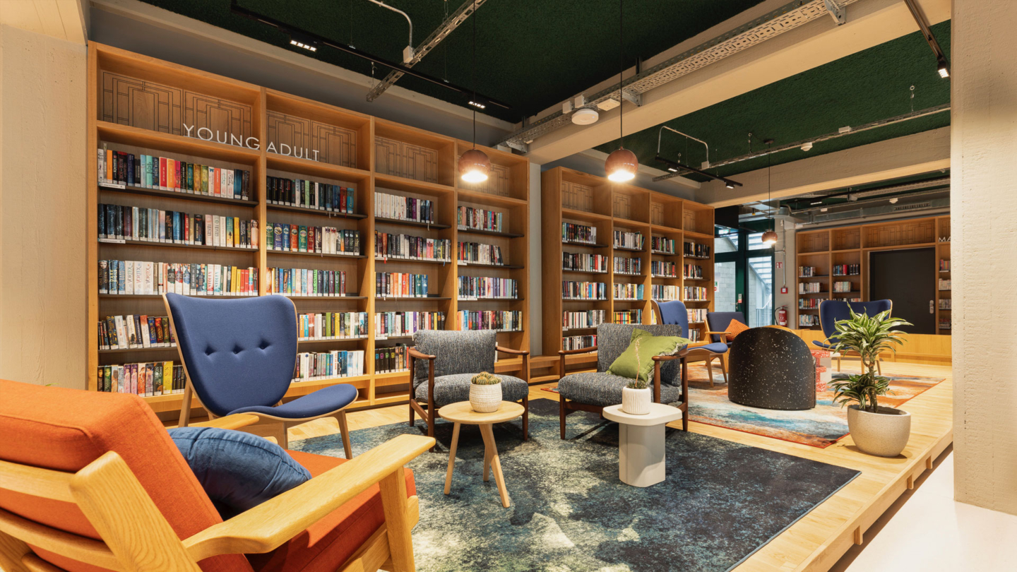 The Bürgerforum Niederberg opened in Velbert in the early 1980s. This beloved cultural and event house – later renamed Forum Velbert – is home to the region’s most important cultural organizations, including the library, a family office, a theater and a center for adult education. Over forty years later, the Forum needed a major update, which had to take into account the copyright protection of some architectural elements. The initial renovation plans already included a significant expansion of the library. However, a renovation alone does not necessarily transform a library into an authentic third place. In addition, the library organization had specific requirements that they wanted translated into the new library design. These issues required a step-by-step approach.